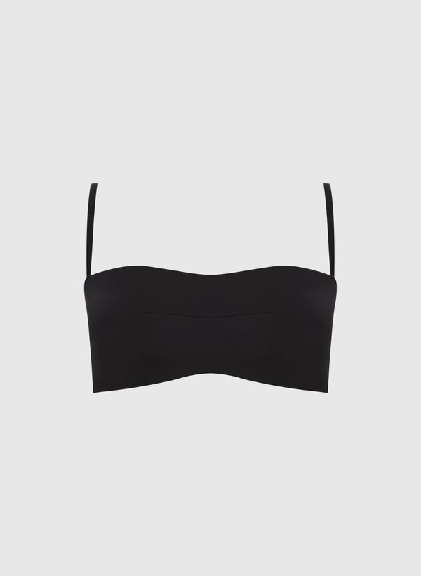 O Top é confeccionado em malha fluity, possui decote coração, alças finas, recorte no centro, fechamento posterior e acabamento pespontado.