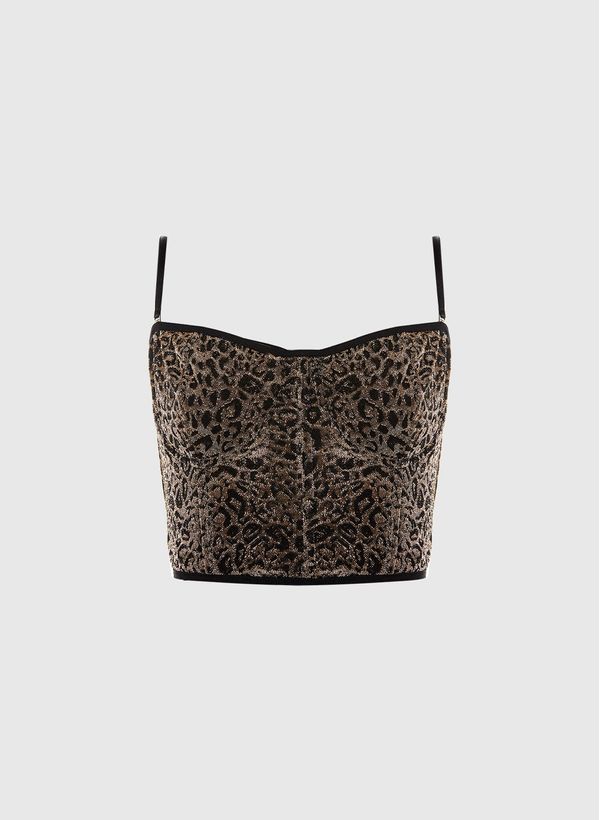 Para as amantes de animal print, o top underwear compõe um visual sexy e poderoso. Use com saia e bota para um look cheio de personalidade.