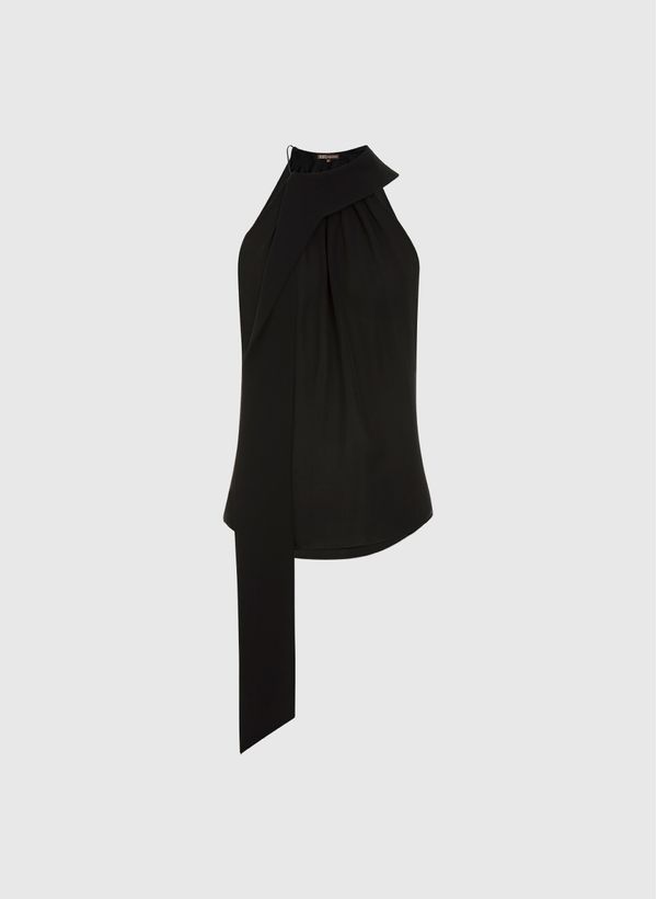 Confeccionada em seda, a Blusa possui decote assimétrico com efeito drapeado, uma alça fina e outra média que termina após o acabamento da peça, detalhes franzidos e acabamento pespontado.