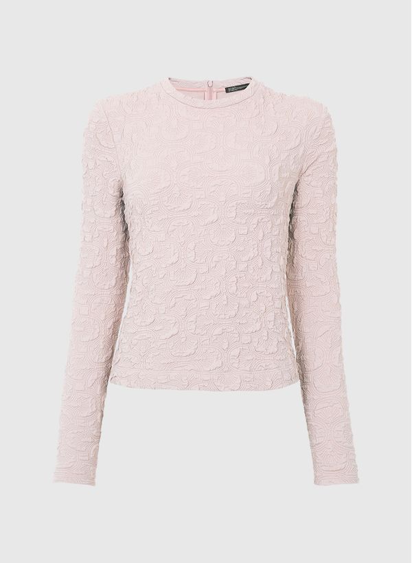 Confeccionada em malha texturizada, a Blusa Ayres possui caimento ajustado, decote redondo, mangas longas, fechamento posterior por zíper e acabamento pespontado.