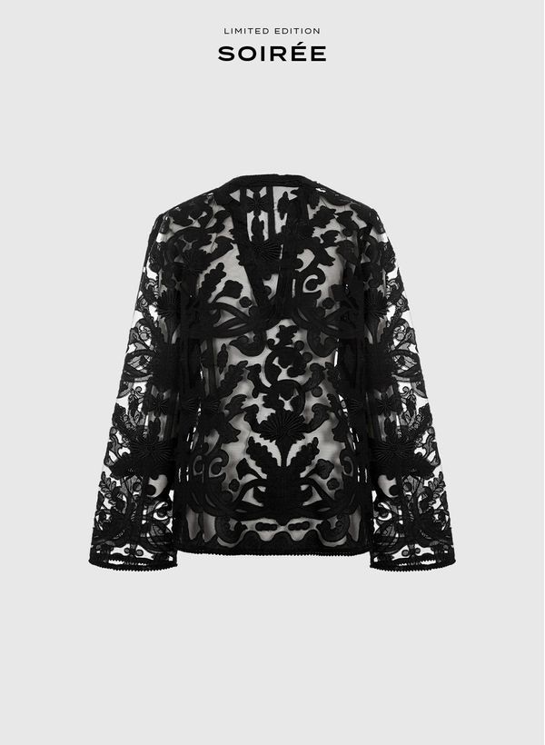 Esta peça faz parte da linha BO.BÔ Soirée – uma edição limitada inspirada nas ocasiões intimistas francesas que ocorrem ao anoitecer, elaborada em tecidos nobres com bordados e acabamentos especiais.