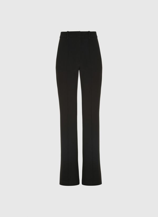 A Calça é confeccionada em malha crepe, possui caimento ajustado ao corpo, cós com passantes, dois bolsos frontais modelo faca e dois bolsos posteriores embutidos, detalhe frontal de nervura, fechamento frontal por colchete e zíper com vista embutida e acabamento pespontado.