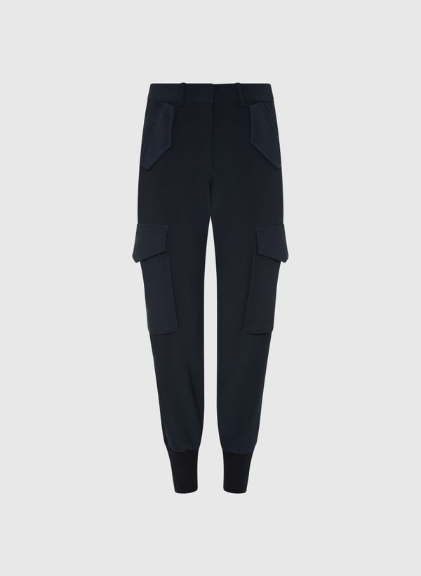 A Calça é confeccionada em malha ville, possui caimento reto, modelo jogging, cós com passantes, dois bolsos frontais modelo faca, dois bolsos amplos nas laterais com lapelas, dois bolsos posteriores com lapelas, barra canelada com fendas laterais, fechamento frontal e acabamento pespontado.
