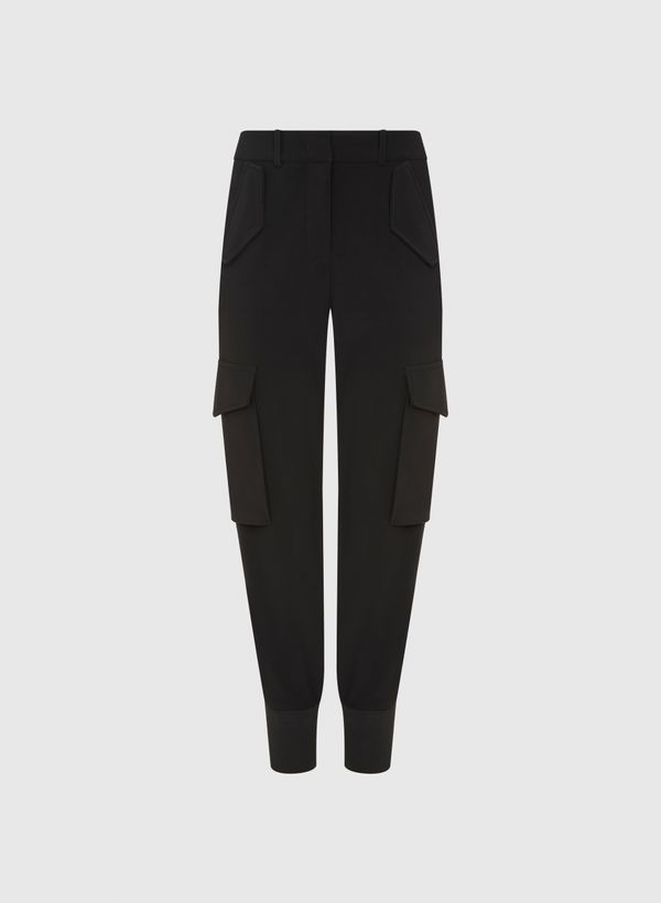 A Calça é confeccionada em malha ville, possui caimento reto, modelo jogging, cós com passantes, dois bolsos frontais modelo faca, dois bolsos amplos nas laterais com lapelas, dois bolsos posteriores com lapelas, barra canelada com fendas laterais, fechamento frontal e acabamento pespontado.
