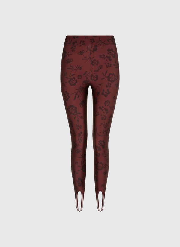 A Calça é confeccionada em malha jersey, possui estampa floral, modelagem fusô, cós aplicado, alça no pé e acabamento pespontado.
