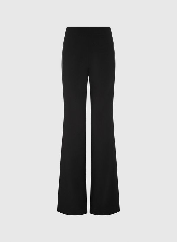 A Calça é confeccionada em tecido estruturado de alfaiataria com recorte em crepe acetinado, possui modelagem reta, modelo alfaiataria, bolsos posteriores embutidos, fechamento posterior por zíper invisível e acabamento pespontado.
