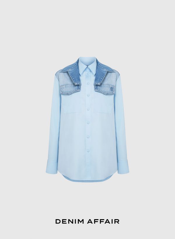 Aposte no contraste de texturas, trazendo um toque urbano e moderno ao visual. Combine a Camisa Thali Sky com acessórios, calça e complemente com scarpin, para um visual easychic.