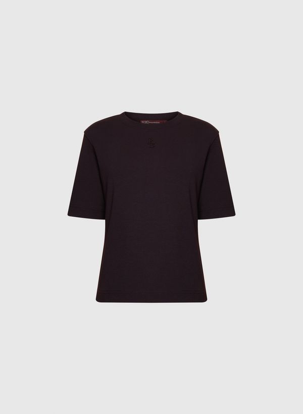 A Camiseta é confeccionada em malha, possui caimento reto, gola redonda canelada, mangas curtas, detalhe frontal de logo da marca bordado e acabamento pespontado.