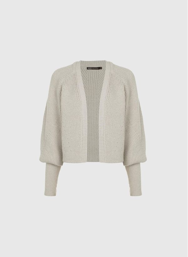 Confeccionado em tricot, o Cardigan possui modelagem reta, decote V, mangas bufantes e acabamento canelado.