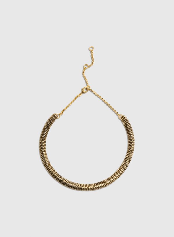 A Choker é confeccionada em metal com banho ouro vintage, possui liga de alumínio aplicado e fechamento por gancho.