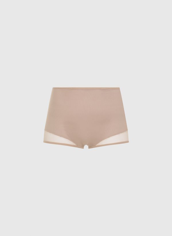 O Hot Pants é confeccionado em malha underwear, possui modelagem justa ao corpo, cintura alta, laterais amplas com detalhe em tela, forro interno e acabamento pespontado.