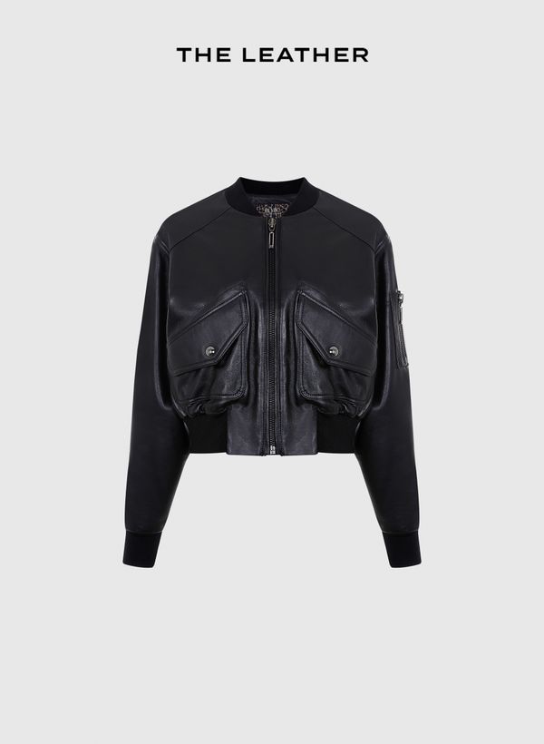 Confeccionada em couro italiano, a Jaqueta possui modelagem reta, gola redonda, dois bolsos laterais com fechamento por botão, fechamento frontal por zíper e acabamento pespontado.