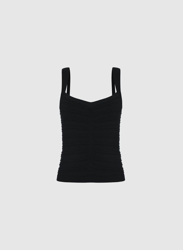 Cheia de atitude, a Regata Ember aposta na textura canelada para criar um visual elegante e marcante. Combine com acessórios, calça e complemente com scarpin, para um look all black chic.