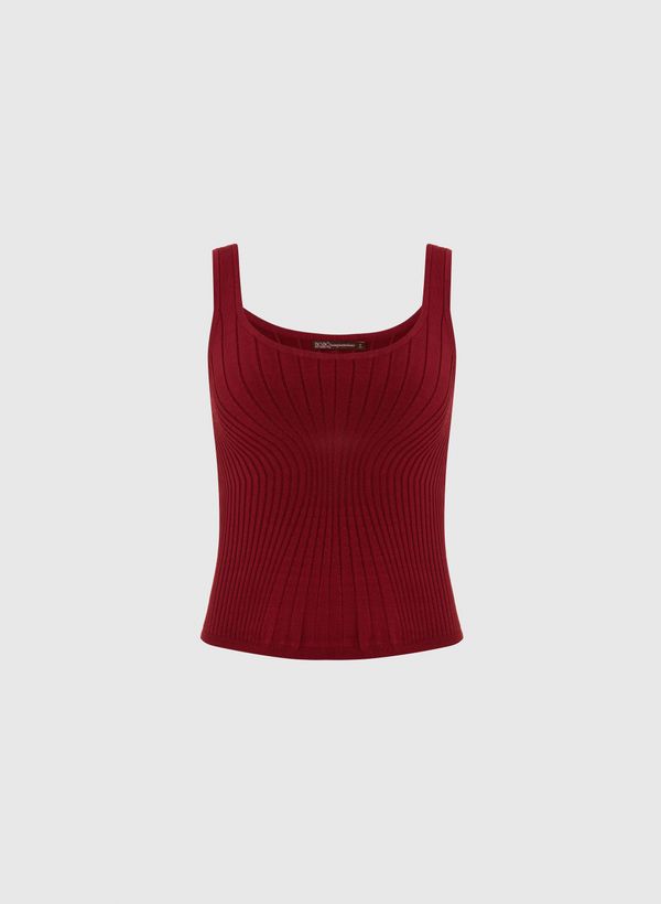 A Regata é confeccionada em fio de viscose com o ponto de tricot, possui decote levemente em U, alças médias e acabamento canelado.
