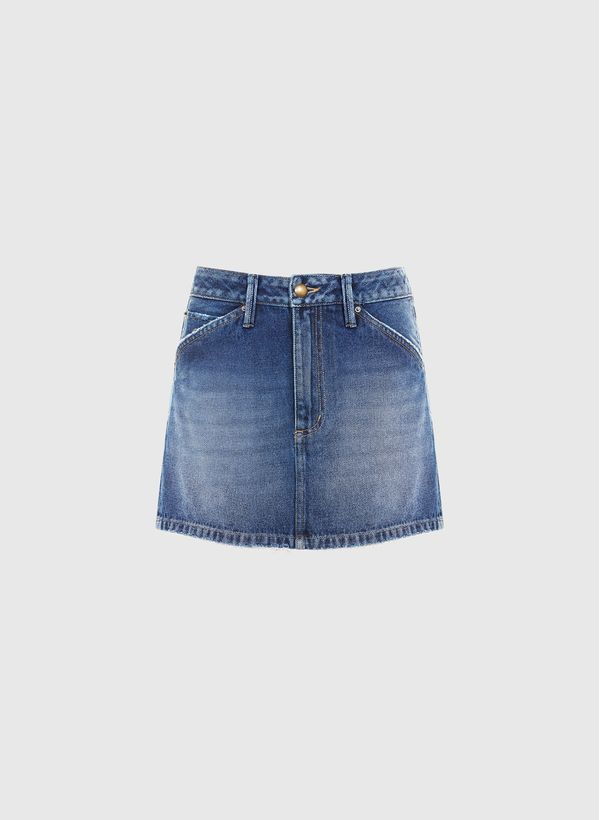 Confeccionada em jeans, a Saia possui modelagem reta, cós com passantes, dois bolsos frontais e dois bolsos posteriores, comprimento curto, fechamento frontal por botão e acabamento pespontado.