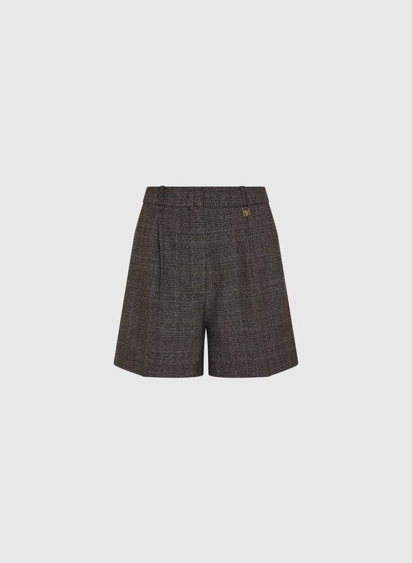 O Shorts é confeccionado em crepe twill, possui padronagem xadrez, modelagem em alfaiataria, cós com passantes, detalhe do pingente com logo da marca no passante, dois bolsos frontais, dois bolsos posteriores embutidos com lapelas, fechamento frontal por zíper, comprimento curto e acabamento pespontado.