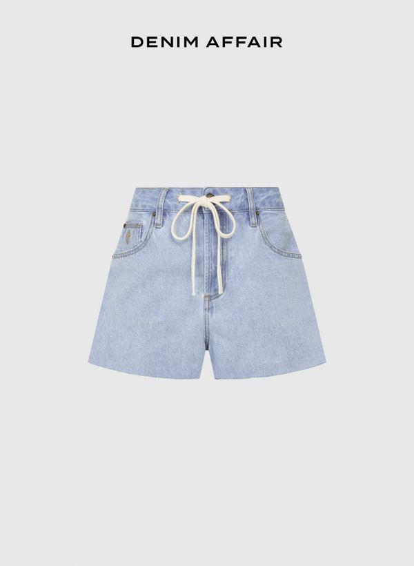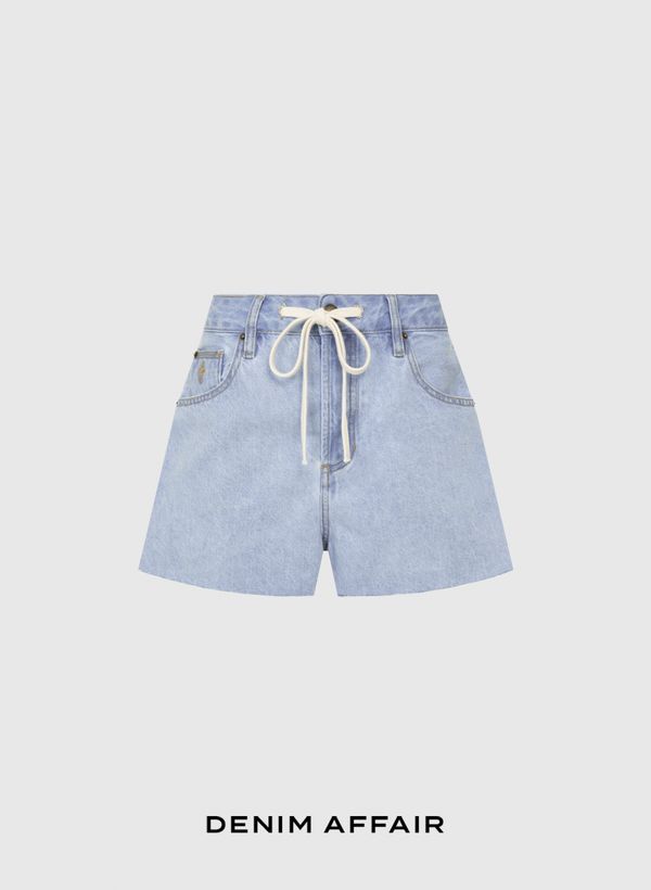 O Shorts é confeccionado em jeans com lavagem clara, possui cós com passantes, dois bolsos frontais tipo faca, um bolso relógio com bordado, dois bolsos traseiros com filigrana de cobra, cordão para amarração, fechamento frontal por zíper e botão, comprimento curto e acabamento a fio.
