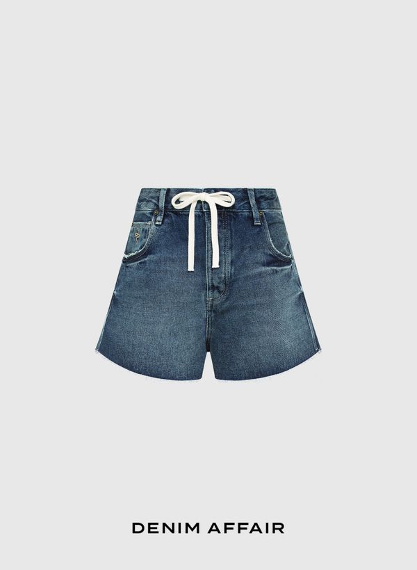 O Shorts é confeccionado em jeans, possui lavagem escura, cós com passantes, dois bolsos frontais tipo faca, um bolso relógio com bordado, dois bolsos traseiros com filigrana de cobra, cordão para amarração, fechamento frontal por zíper e botão, comprimento curto e acabamento a fio.