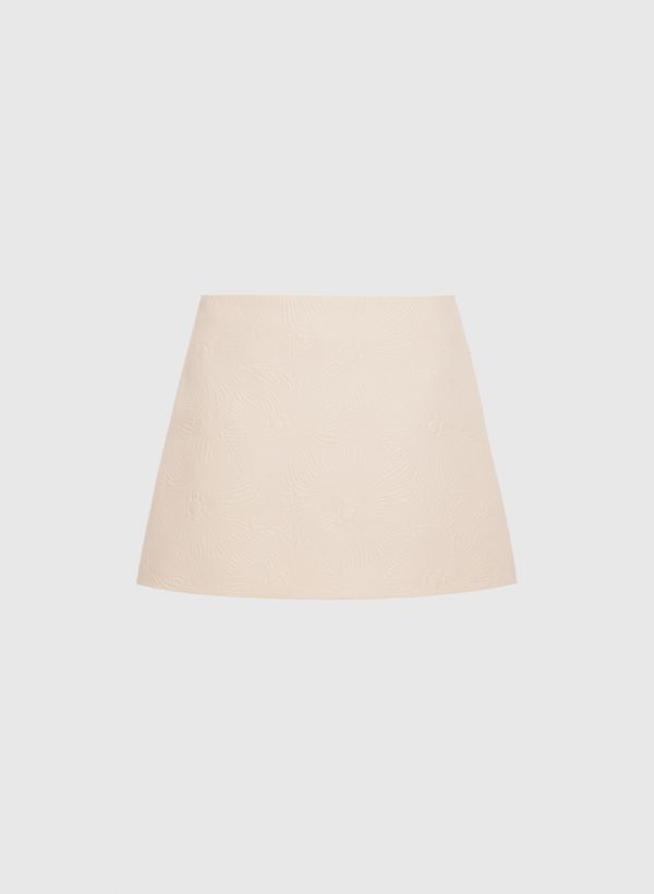 O Shorts é confeccionado em tecido plano com padronagem floral em jacquard, possui modelagem em alfaiataria, caimento reto, fechamento posterior por zíper e comprimento curto.