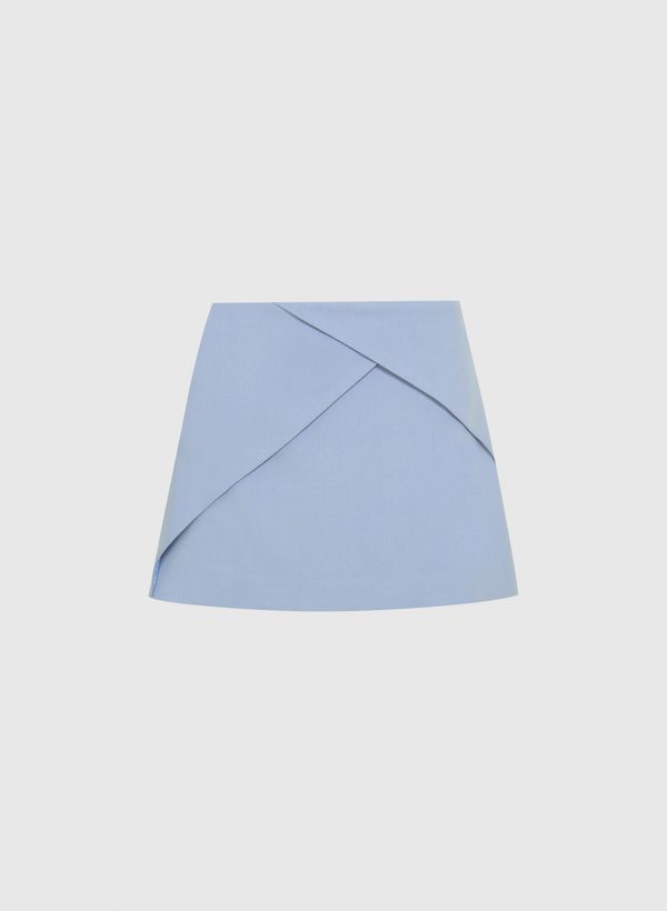O Shorts Saia é confeccionado em tecido plano, possui modelagem em alfaiataria, caimento reto, detalhe de transpasse frontal, fechamento posterior por zíper e comprimento curto.