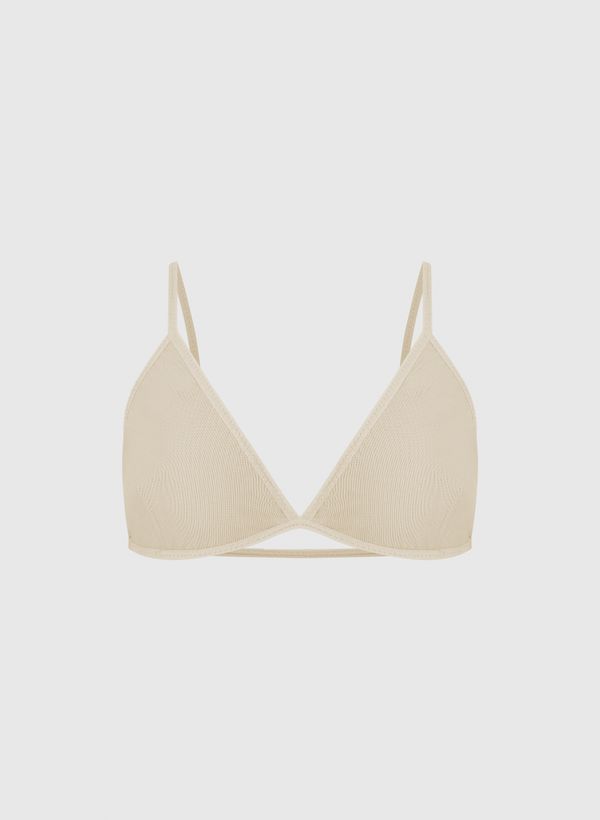 Confeccionado em malha underwear, o Top possui alças finas, decote em "V" e acabamento pespontado.