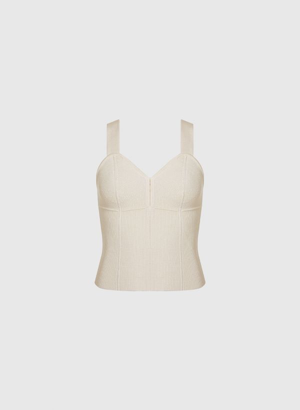 Confeccionado em tricot, o Top possui caimento ajustado ao corpo,alças médias, decote em "V" e acabamento canelado.